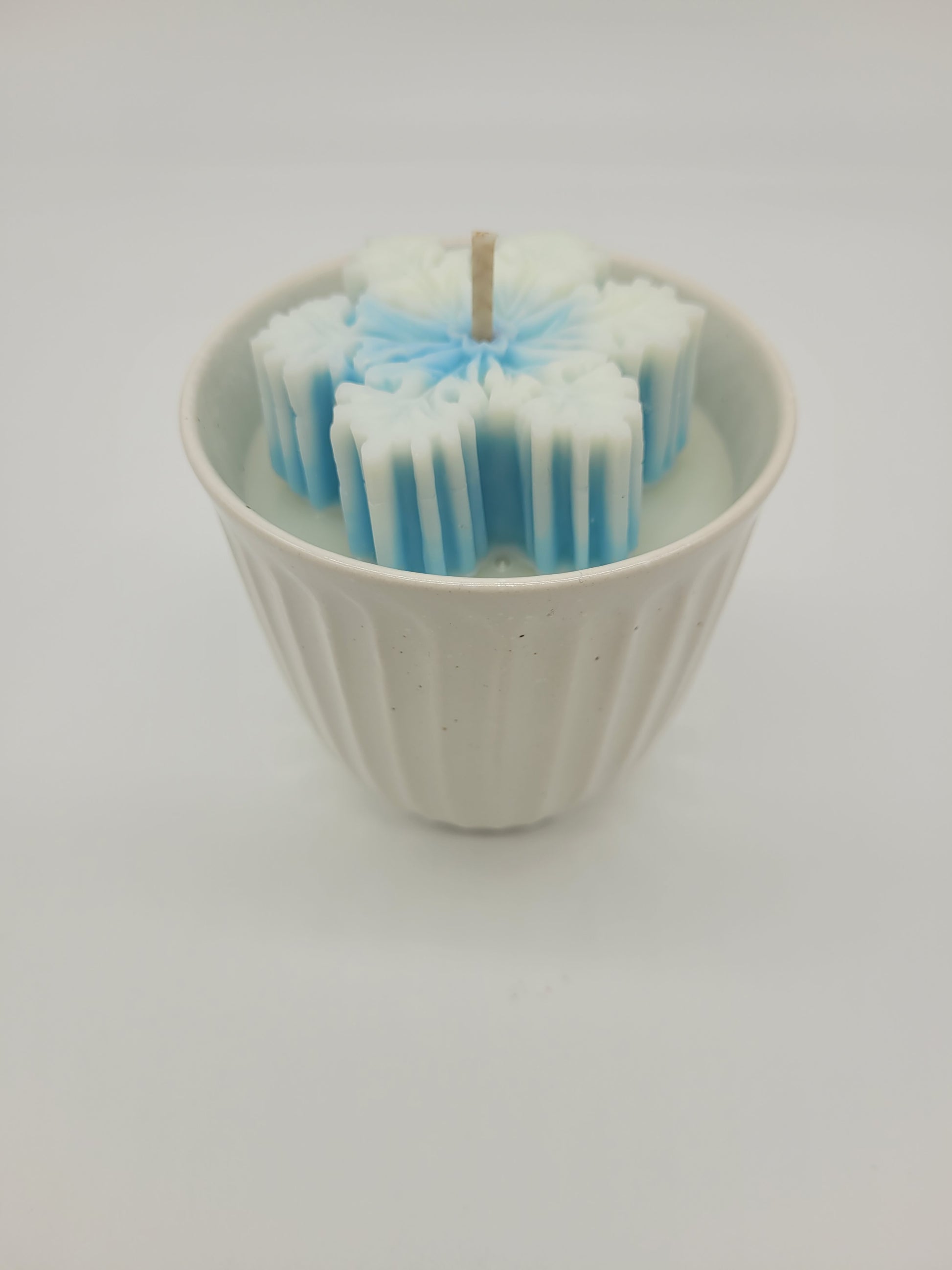**Please Note: As each candle is handmade, there may be slight variations in the colour and shape compared to photos. In addition, ceramic tea cups are seasonal and may change from photos. It will be black or white.